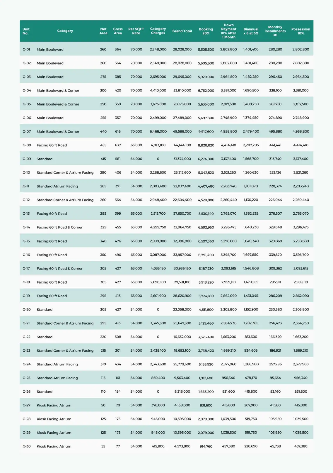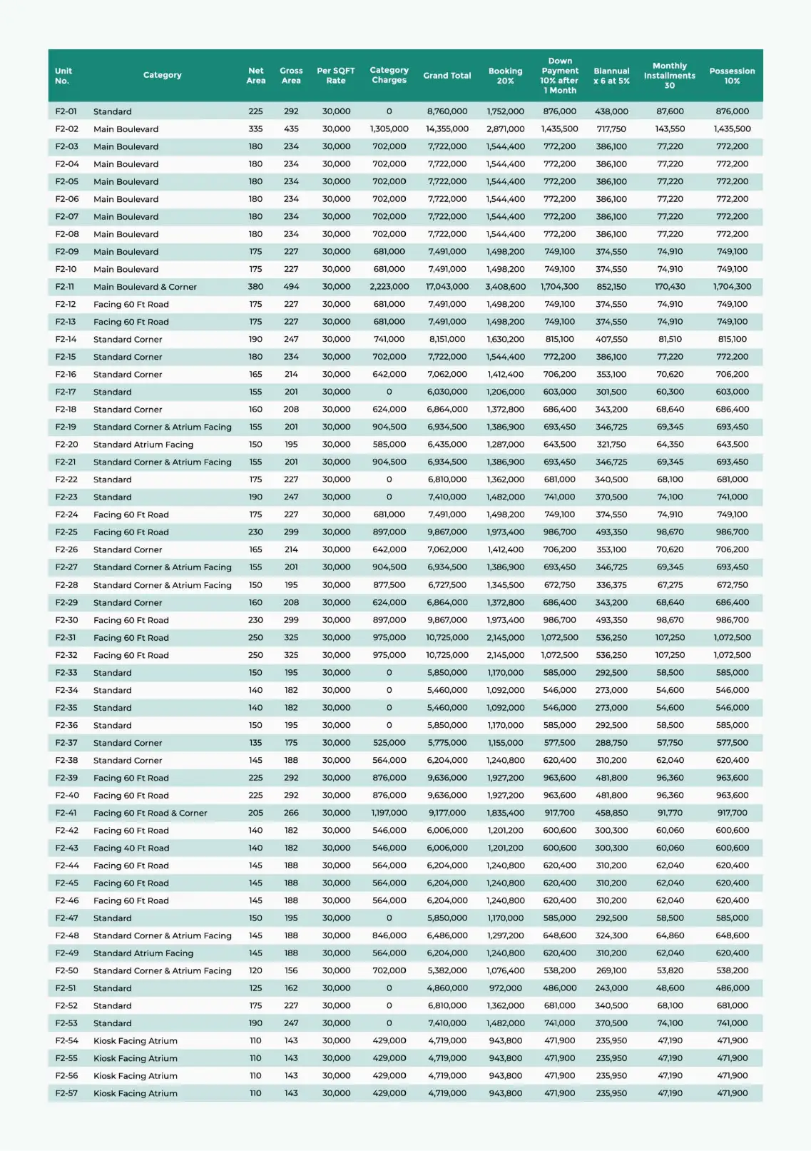 Affordable Down Payment: Start with a minimal booking amount to reserve your apartment or shop.