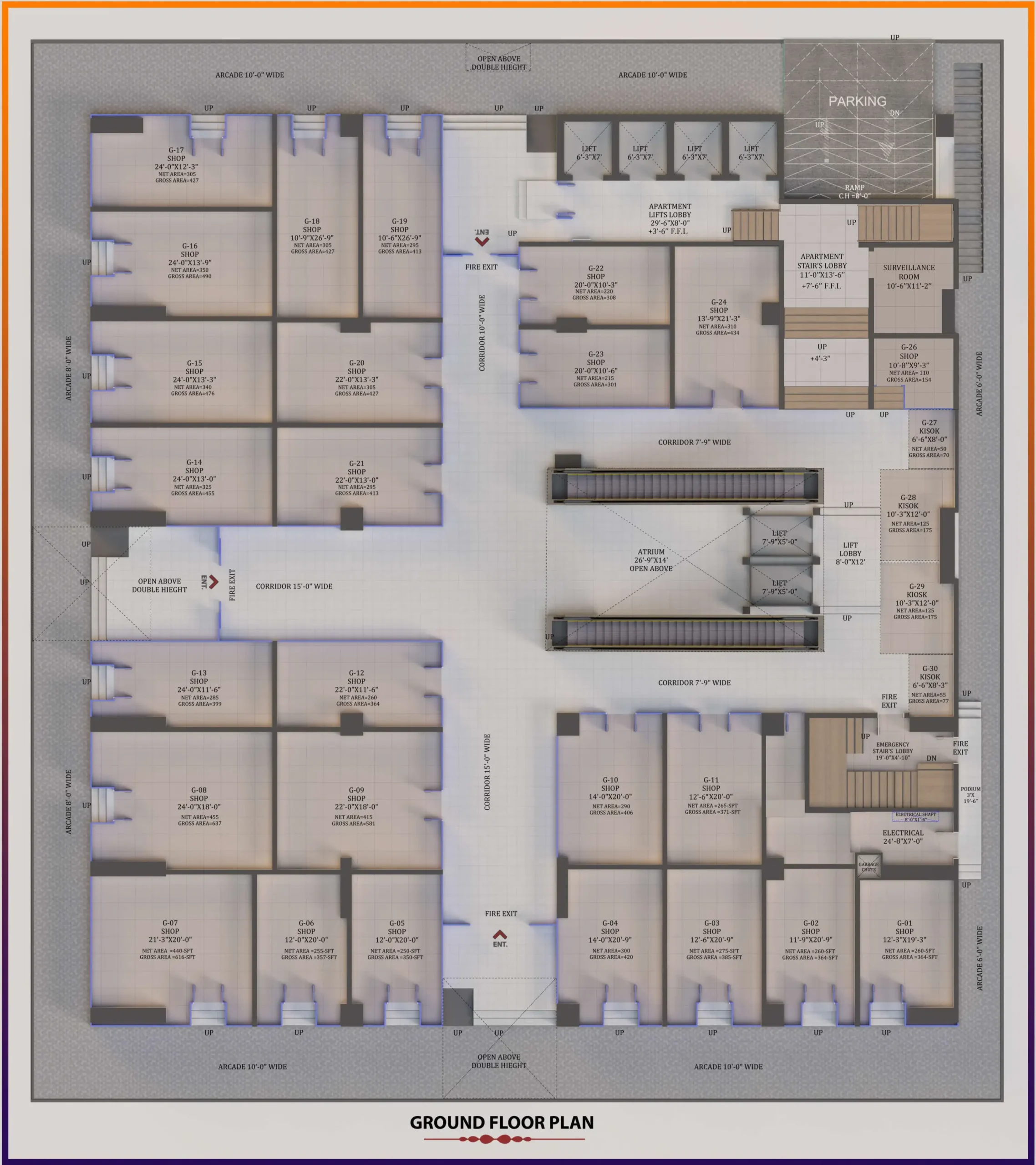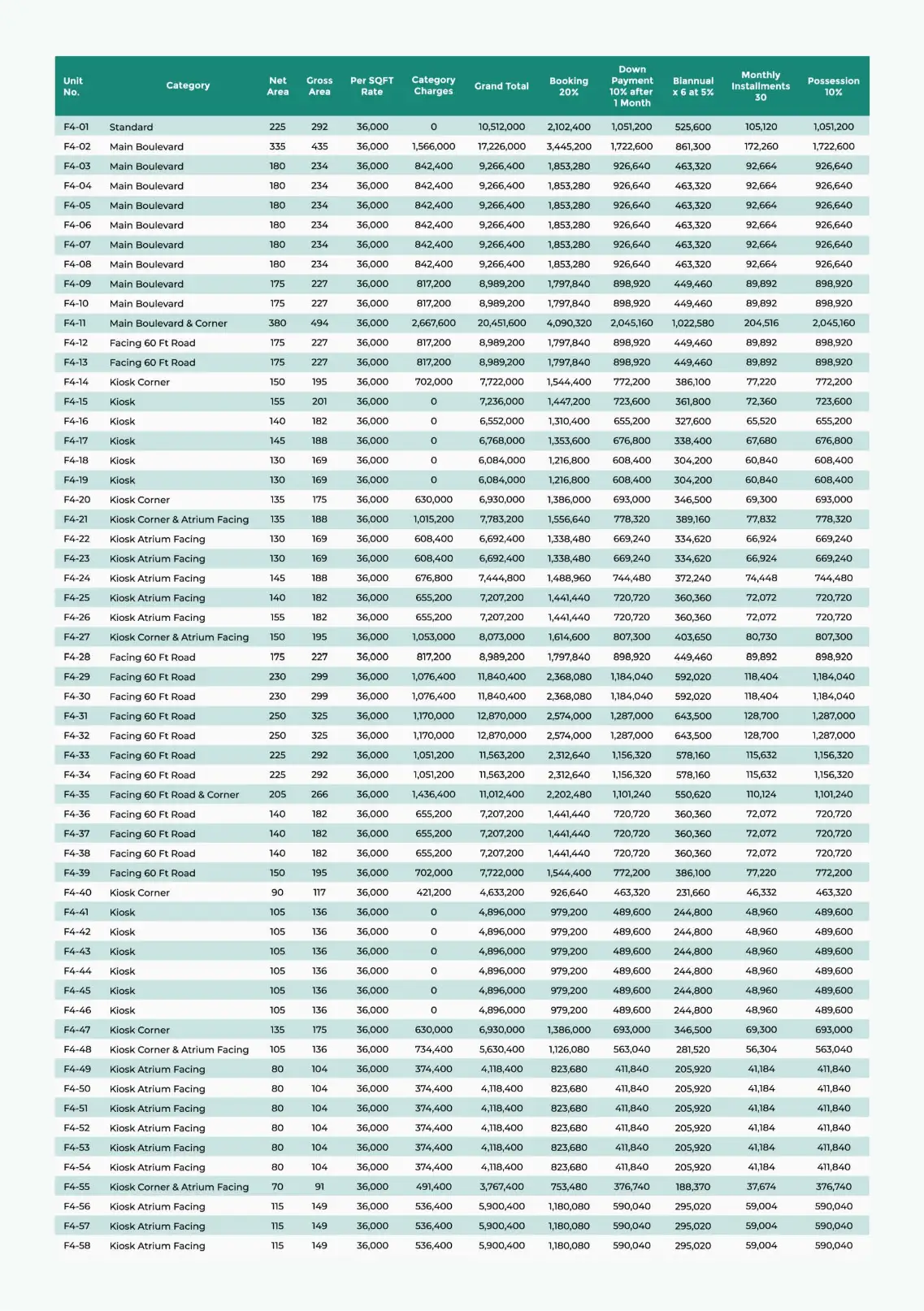 Commercial Shops & Outlets: Strategically located on lower levels with prime frontage, ideal for high visibility and maximum footfall.