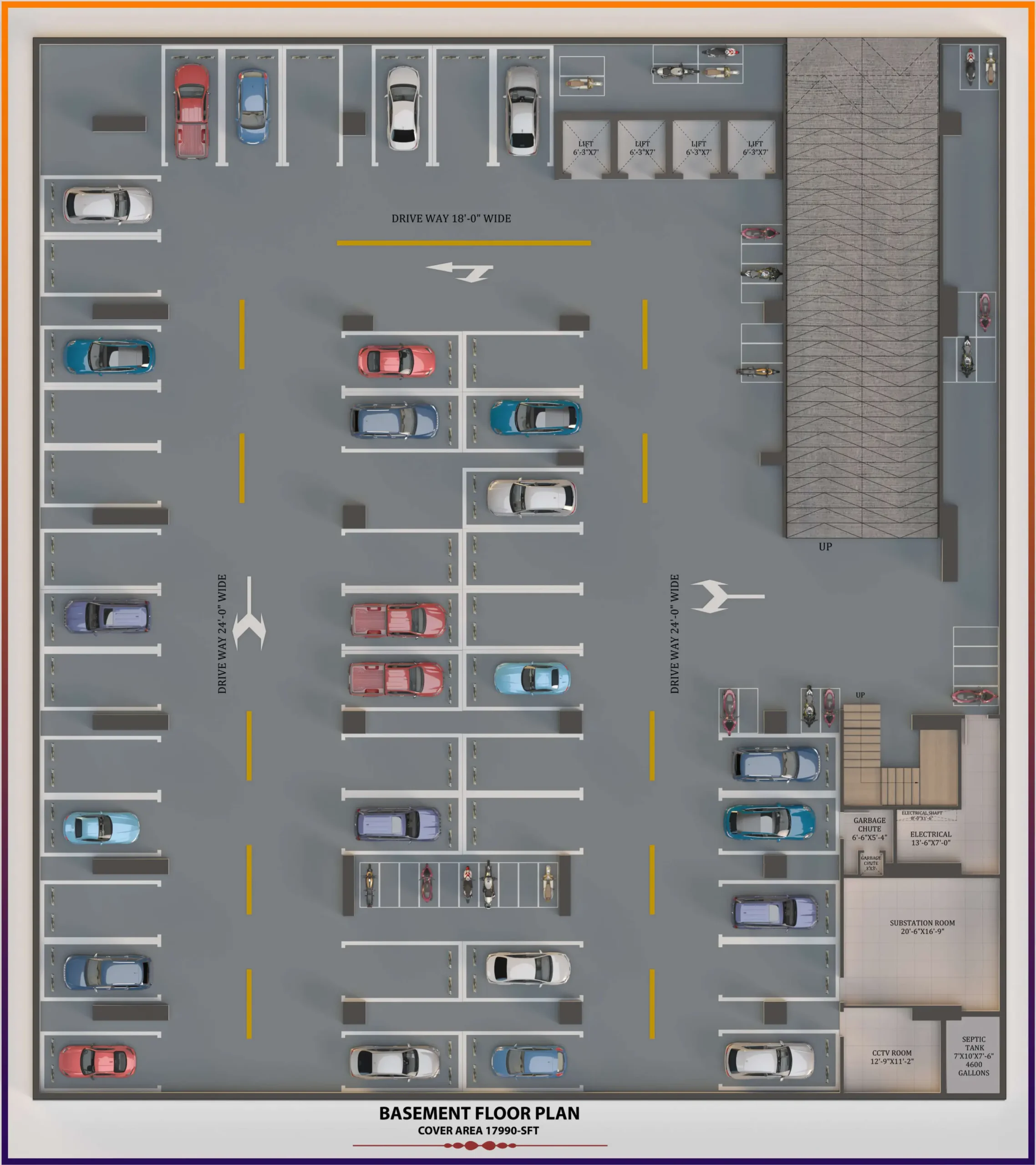 The floor plans of Bahria Sky 2 are thoughtfully designed to maximize space, comfort, and functionality. Each floor combines modern layouts with smart utilization of every square foot, ensuring convenience for both residential and commercial purposes.