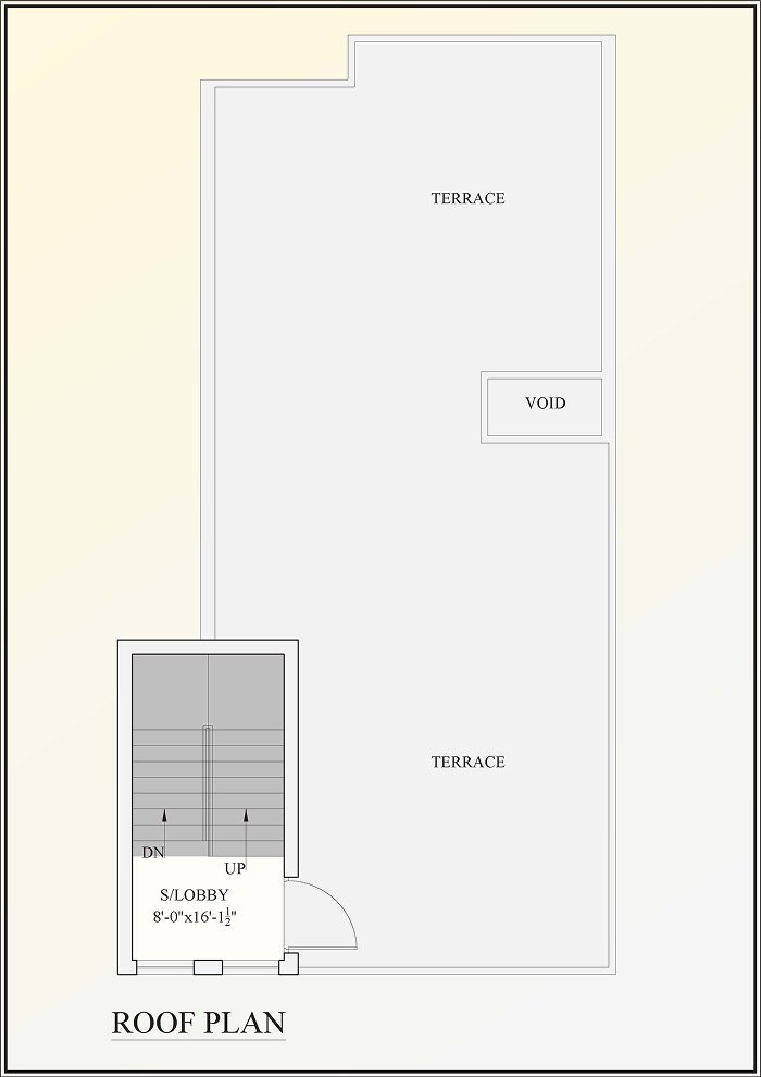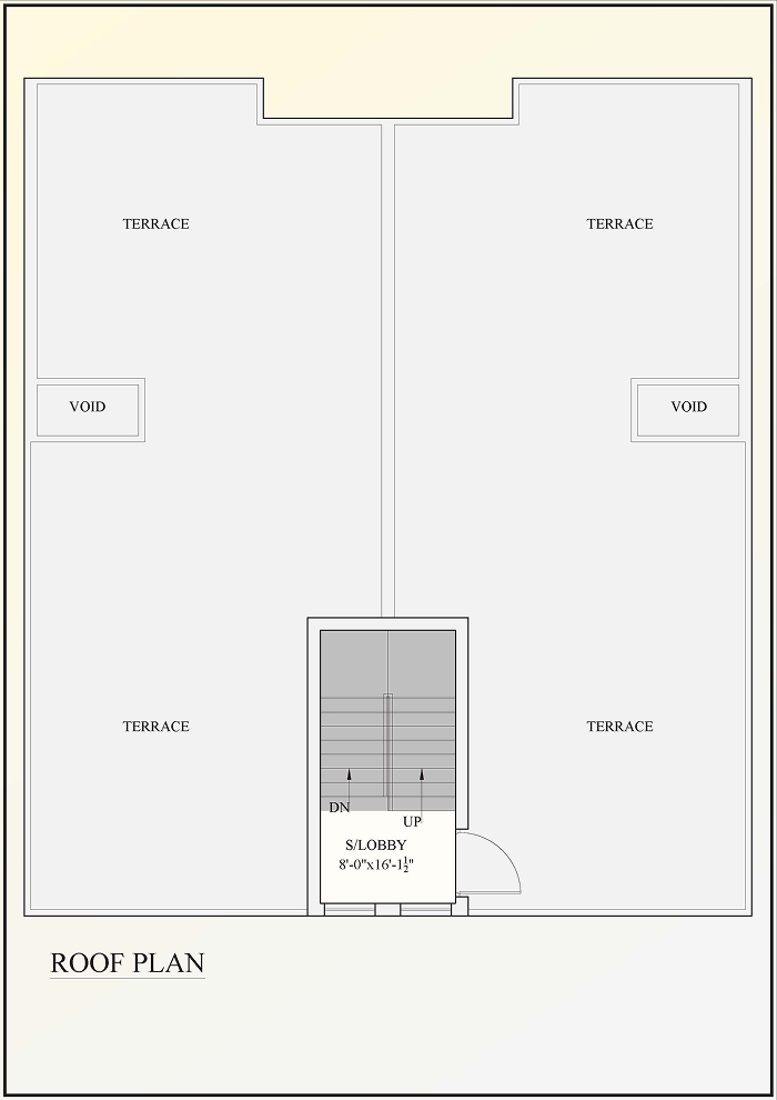 - Roof Plan: Expansive private terrace with void openings — perfect for family gatherings, rooftop gardens, or evening relaxation.